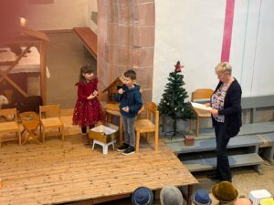 Am 14.12.25 fand unser diesjähriges Krippenspiel der Adler (Vorschulkinder) statt. Die Aufregung bei den Kindern war groß und die Kirche gut gefüllt. Im Anschluss an die herzliche Begrüßung durch die Pfarrerin Frau Schmidt-Wecken und Frau Apel begann der Gottesdienst.